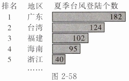 台风是我国常见的自然灾害之一。图 2-58 为某学者做的 1949—2021 年我国遭遇台风登陆的省区数据统计图。读图,完成 4~6 题。