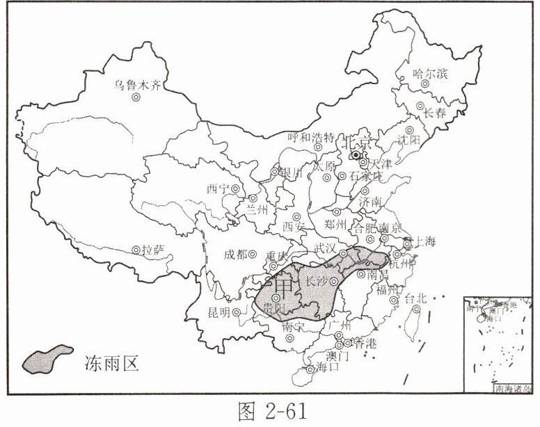(2)图中冻雨主要分布区中,甲省区大部分位于______(填地形区)。