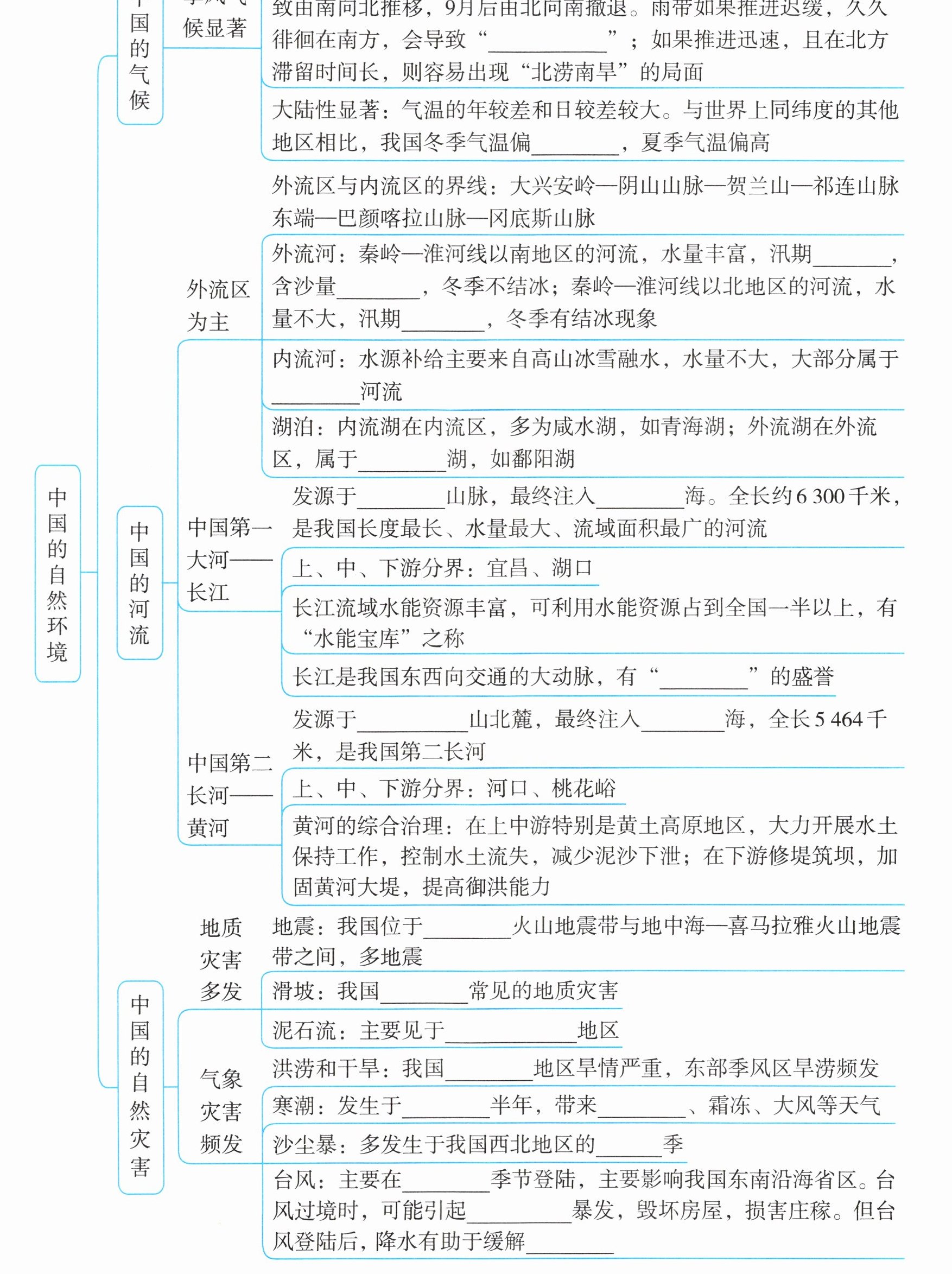 天山 秦岭 六盘山 大兴安岭 长白山脉 阿尔泰 山区 青藏 西高东低 阶梯 昆仑 横断 太行 降水 东 水能 大 高温 亚热带 热带 东南沿海 西北内陆 夏秋 半干旱地区 温带季风 温带大陆性 偏南风 4 南涝北旱 低 长 小 较短 季节性 淡水 唐古拉 东 黄金水道 巴颜喀拉 渤 环太平洋 山区 山地高原 西北 冬 急剧降温 春 夏秋 洪水 旱情