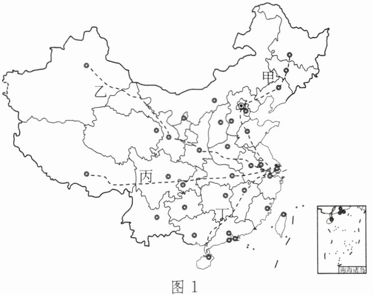 上海某中学的同学设计了四条从上海出发的研学路线(如图1),对祖国进行实地考察。读图,完成1~3题。