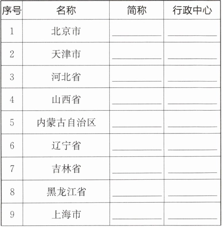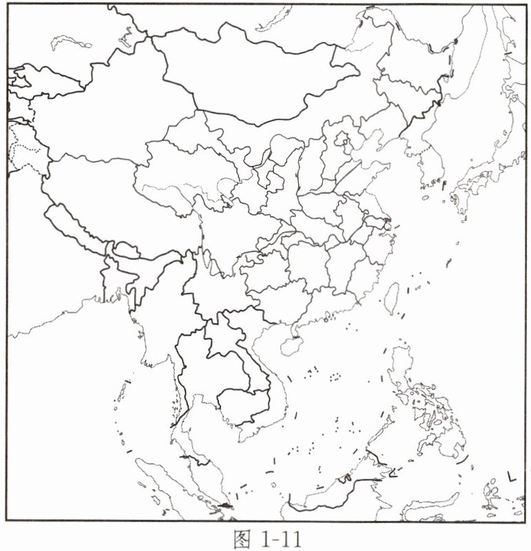 (2) 将表 1 - 1 中所有省级行政区对应的序号在图 1 - 11 中标注出来。