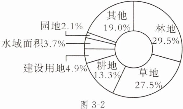 图 3 - 2 为中国土地利用类型结构(2022 年)图。读图,完成 1~2 题。