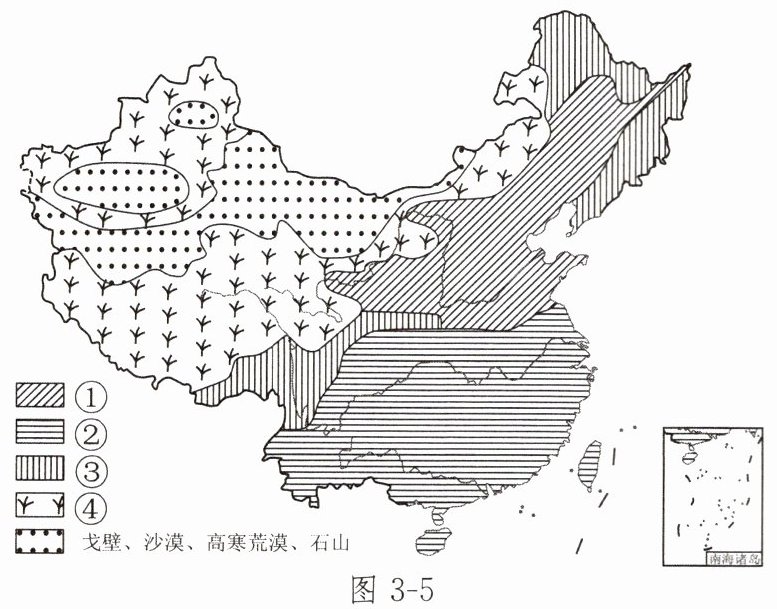9. 图 3 - 5 为中国主要土地利用类型分布示意图。读图,完成下列各题。