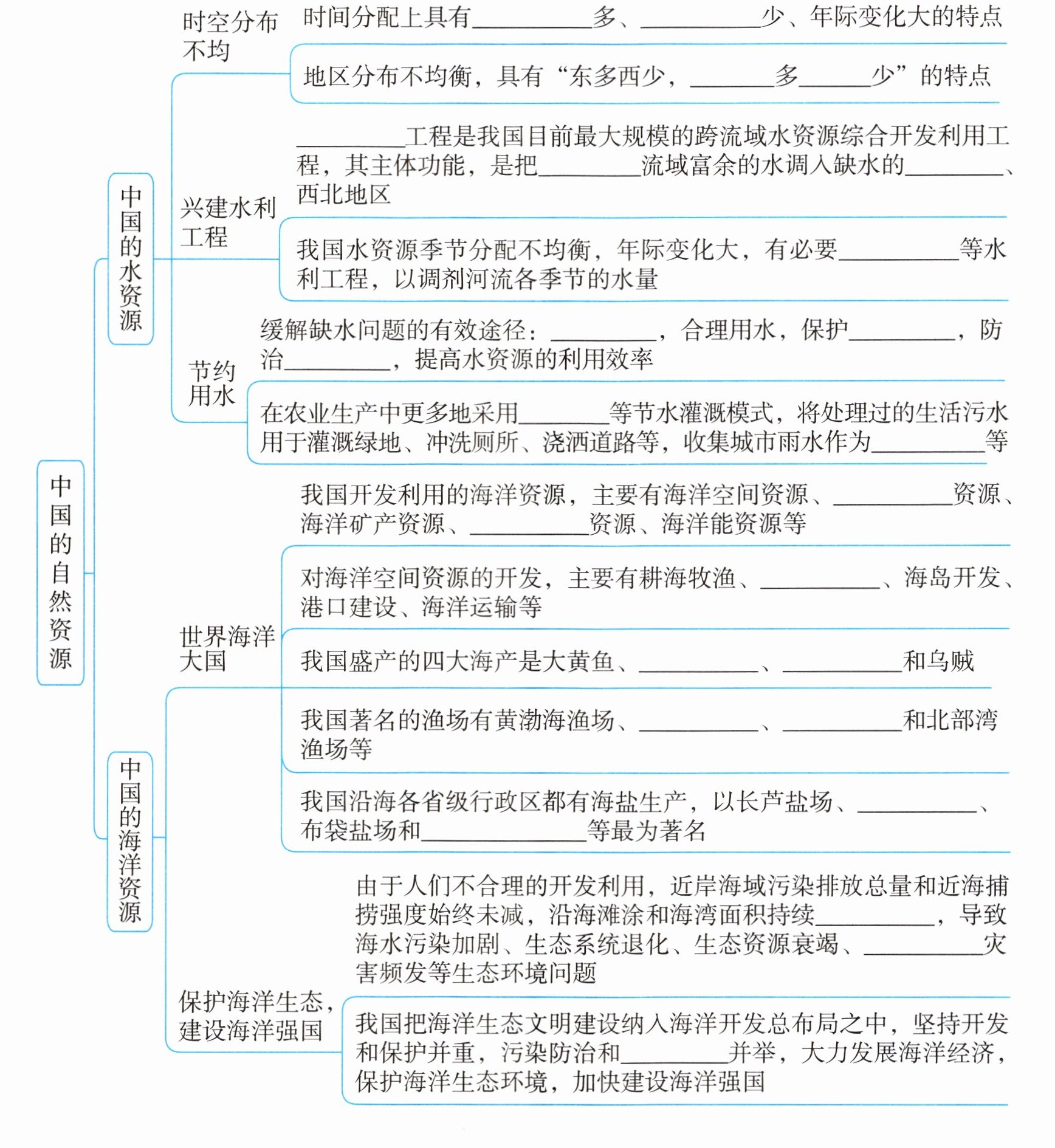 耕地 草地 耕地 草地 东部季风 西南 内陆 水田 旱地 土地 耕地 非可再生 能源 较大 地区分布不均衡 东北 南方多 北方少 夏秋 冬春 南 北 南水北调 长江 华北 兴建水库 节约用水 水资源 水污染 滴灌 绿化用水 海洋生物 海洋化学 填海造地 小黄鱼 带鱼 舟山渔场 南海渔场 苏北盐场 莺歌海盐场 减少 赤潮 生态修复