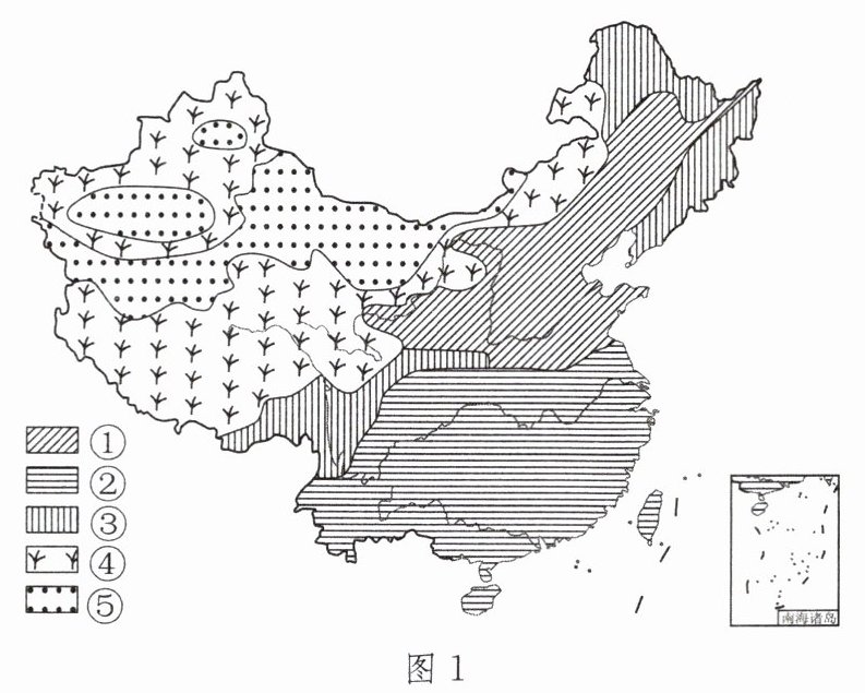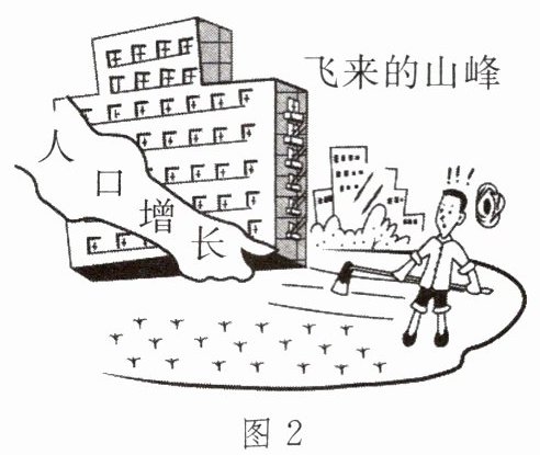 图 1 为中国主要土地利用类型分布示意图,图 2 为漫画《飞来的山峰》。读图,完成 1~3 题。