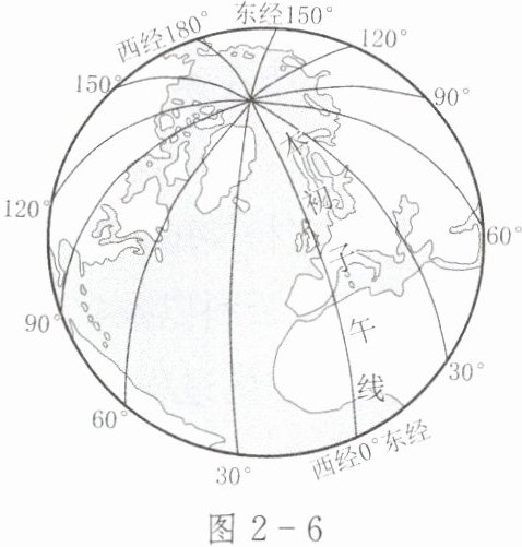 ②经度: $0^{\circ}$ 经线被称为______,是经度的起始线。从这条经线向东为东经,向西为西经,分别用“______”和“______”表示。