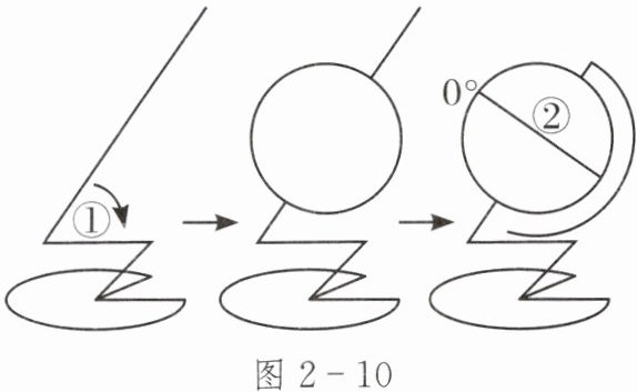 图 2 - 10 为小明用乒乓球制作简易地球仪的过程示意图。读图,完成 5~6 题。