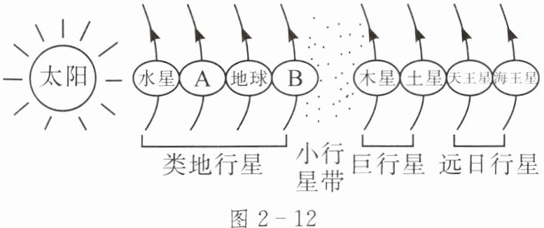 (1) 探索浩瀚宇宙,我们发现按照各行星公转轨道距太阳由近及远的顺序,地球排在第______位,与地球相邻的行星 A 是______星,B 是______星。