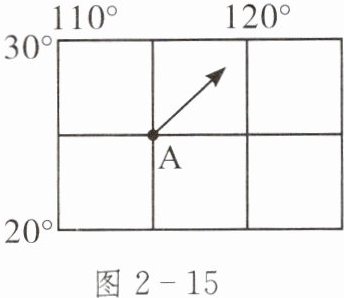 某地某日出现了一种灾害性天气——龙卷风,小明将龙卷风始发地 A 及运动方向在经纬网地图(图 2 - 15)上进行了较为准确的标示。读图,完成下列各题。