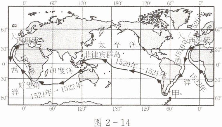 (3) 麦哲伦船队航行经过甲地附近,甲地的经纬度为______。