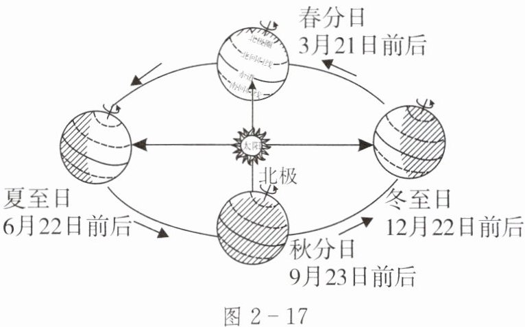 地轴 自西向东 一天 更替 东升西落 时差 太阳 自西向东 一年 昼夜 四季