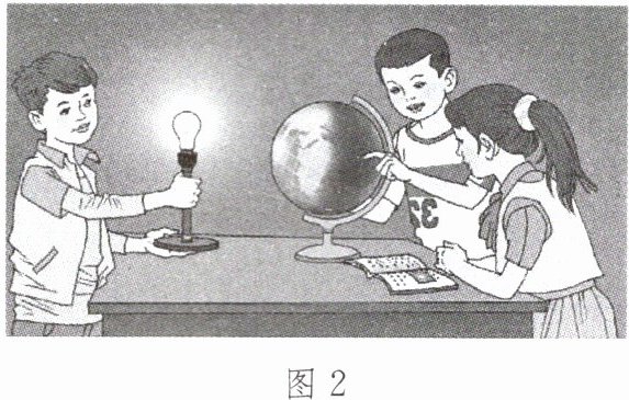 某校地理社团用灯泡和地球仪演示地球的运动。图 2 为地球运动演示过程示意图。据此,完成 7~9 题。