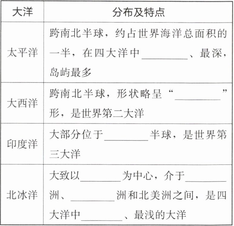 |太平洋|跨南北半球,约占世界海洋总面积的一半,在四大洋中______、最深,岛屿最多|