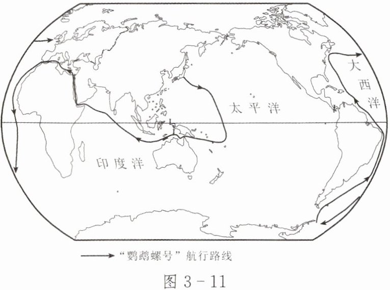 《海底两万里》是法国小说家儒勒·凡尔纳的代表作之一,随着小说,读者登上“鹦鹉螺号”,跟随尼摩船长饱览变幻无穷的海底世界。图3-11为“鹦鹉螺号”航行路线图。读图,完成6~7题。