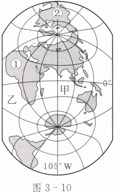 图3-10为竖版七大洲、四大洋分布图。读图,完成第5题。