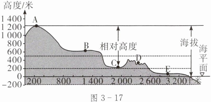 海拔是地面某一个地点高出______的垂直距离;相对高度是指地面某个地点高出另一个地点的______,即两个地点之间的______。