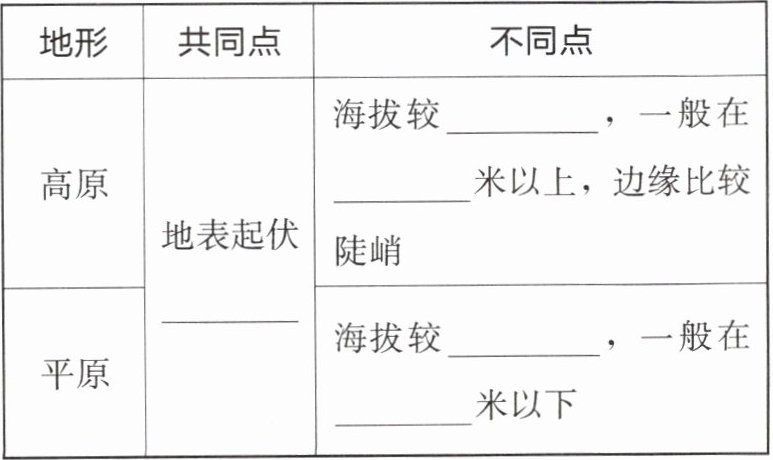|高原|地表起伏______|海拔较______,一般在______米以上,边缘比较陡峭|