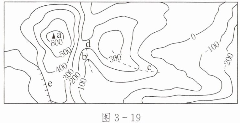 (5)山体不同部位的等高线形态:a表示______,b表示______,c表示______,d表示______,e表示______。