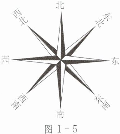 ①一般来说,地平面上有______、______、______、______四个基本方向,在此基础上,又分出______、______、______、______,共八个方向。