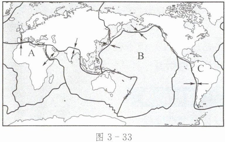 9. 图3-33为板块运动示意图。读图,完成下列各题。