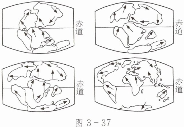 图3-37为学生利用计算机动态模拟的大陆漂移图。