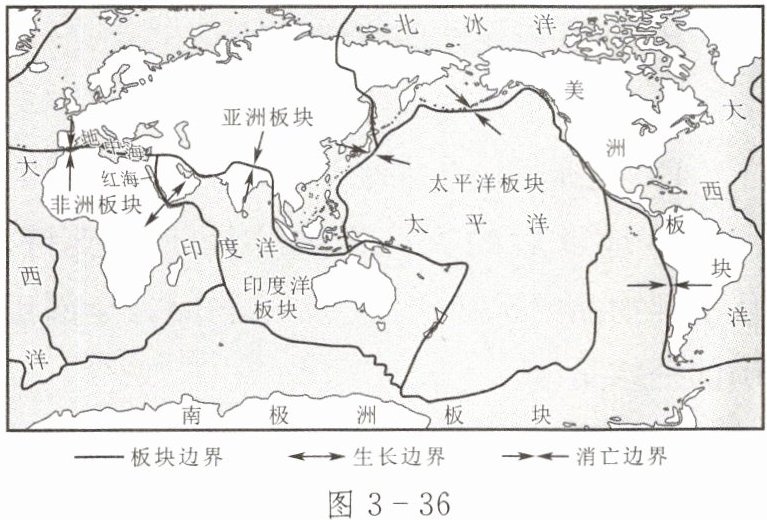 (1)实验中书本和纸张的运动代表地球上的板块运动。图3-34实验反映了板块的______(填“挤压”或“张裂”)运动,图3-35实验反映了板块的______(填“挤压”或“张裂”)运动。当板块交界处发生挤压运动时,地表会发生______(填“断裂陷落”或“隆起”)。