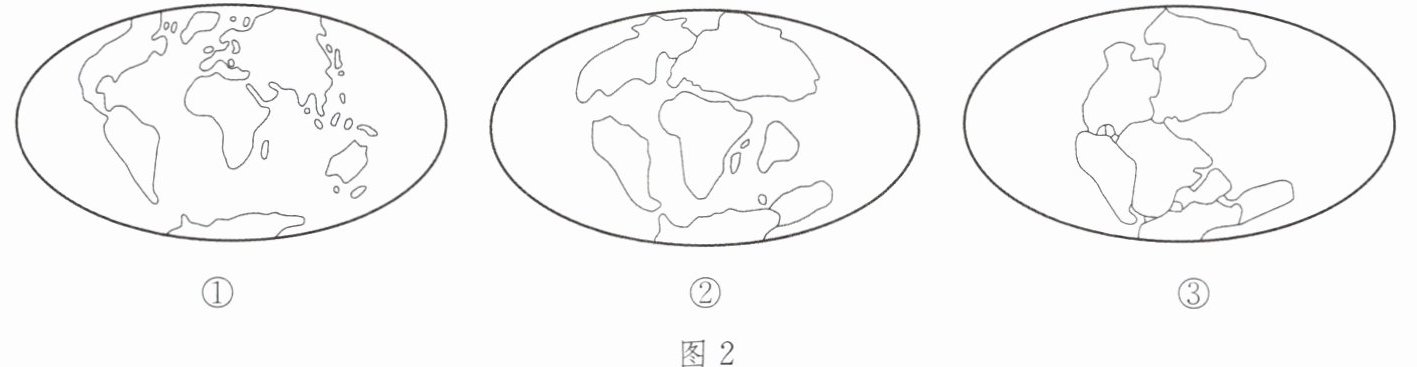图 2 为根据大陆漂移假说所绘制的大陆漂移过程(模拟)图。读图,完成 3~4 题。