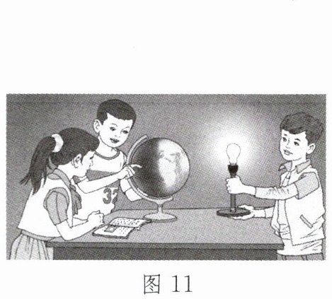 18. 地理课上,同学们用地球仪和灯泡演示地球的运动。图 11 为地球运动过程演示示意图,图 12 为地球公转示意图。读图,完成下列各题。