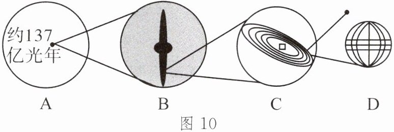 (2)我们目前观测到的宇宙为______(填字母),在宇宙中,像 B 这样的星系还有很多,它们被统称为______。