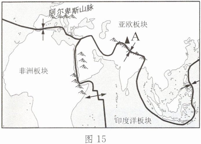 (1)图 15 中的 A 是______山脉,运用板块构造学说解释该山脉的成因:______。