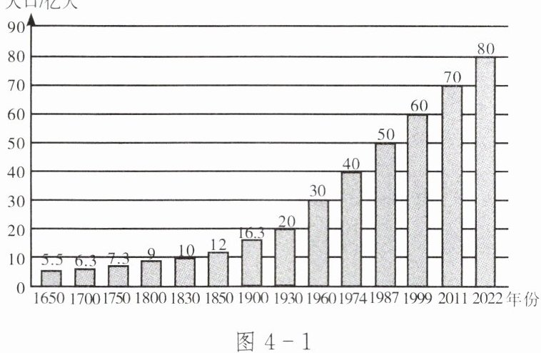 公元1800年以前,世界人口增长______;此后,世界人口增长______。