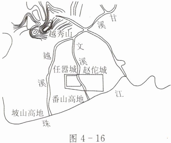 (2022年湖南湘西)公元前214年,任嚣修筑任嚣城,这是广州筑城之始。公元前206年,赵佗进一步扩建任嚣城,俗称赵佗城。图4 - 16为赵佗城示意图。赵佗城布局的特点包括( )。