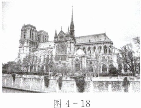 据外媒报道,世界文化遗产巴黎圣母院自 2021 年开始修复工作,于 2024 年底重新开放。图 4 - 18 为巴黎圣母院景观图。读图,完成 5~6 题。