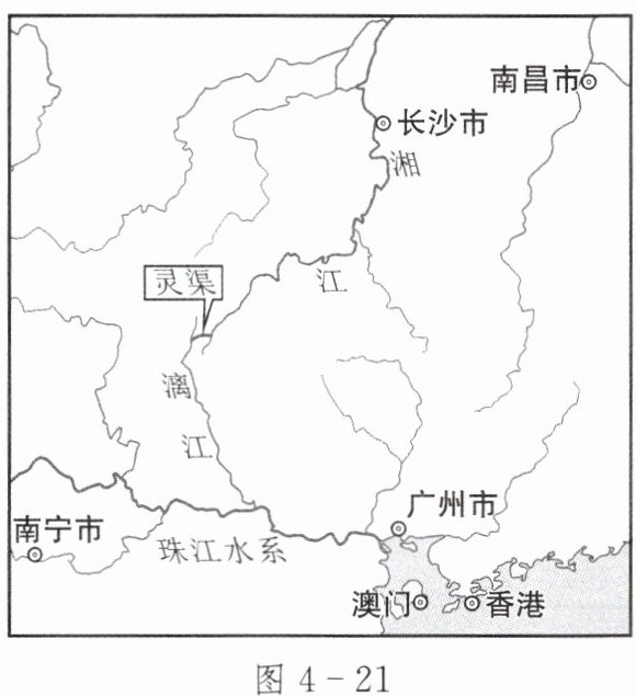 1. 据图 4-21 可知,灵渠连接的两大水系是______和______。