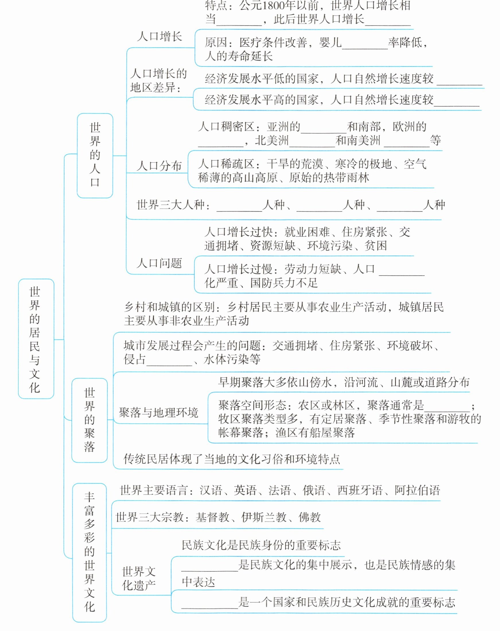 人口稠密区:亚洲的______和南部,欧洲的______,北美洲______和南美洲______等