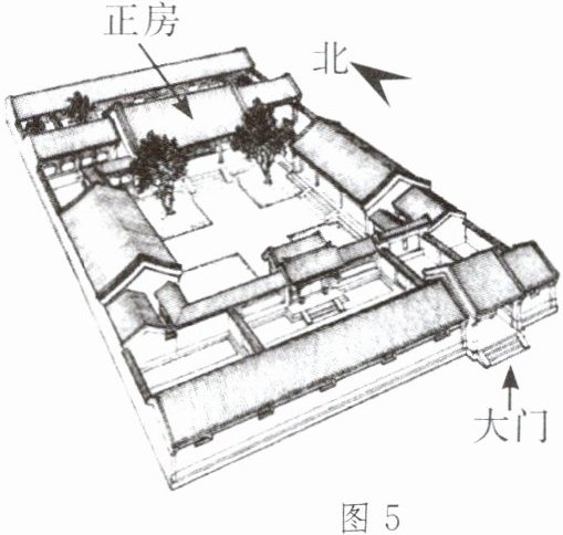 北京四合院是我国优秀传统文化的体现,图 5 为北京四合院示意图。读图,完成第 15 题。