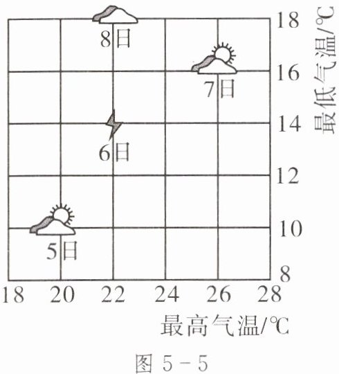 (2022 年四川资阳)资阳某校地理小组对当地 2022 年 4 月 5 日至 8 日的天气进行了观测和记录,结果绘制如图 5 - 5 所示。据此,完成 1~2 题。