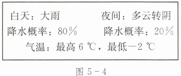 材料 2024 年某日,中学生小明睡前查看了当地未来 24 小时天气预报,如图 5 - 4 所示。