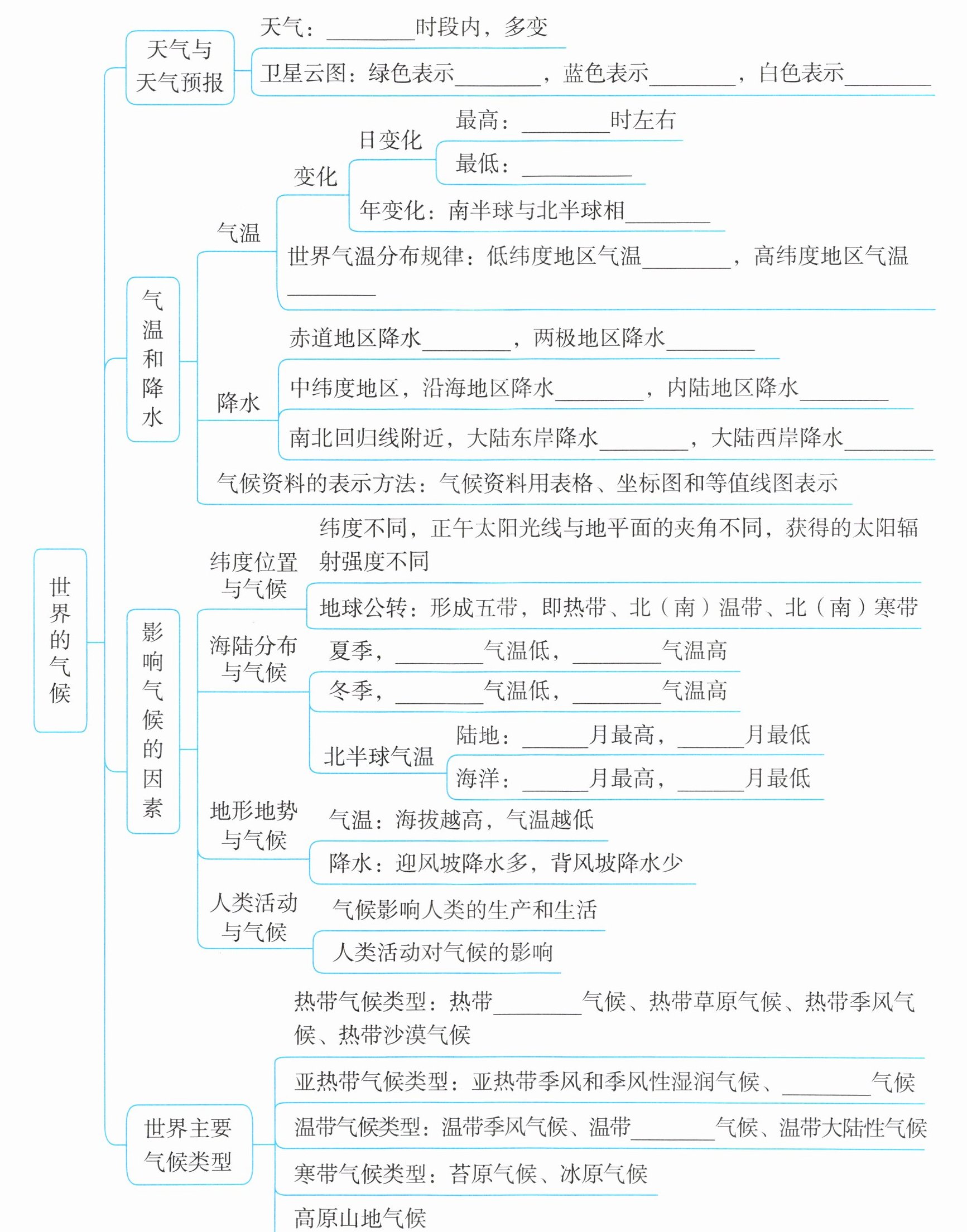 热带气候类型:热带______气候、热带草原气候、热带季风气候、热带沙漠气候