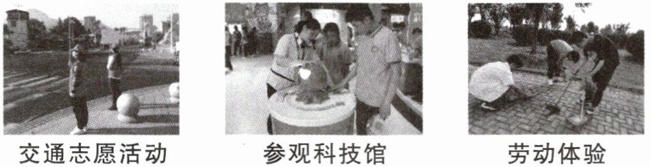 10. 以下是某校八年级(2)班同学利用周末、节假日参加社会实践活动的照片。参加这些实践活动有利于我们( )。