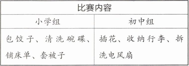 |小学组:包饺子、清洗碗碟、铺床单、套被子