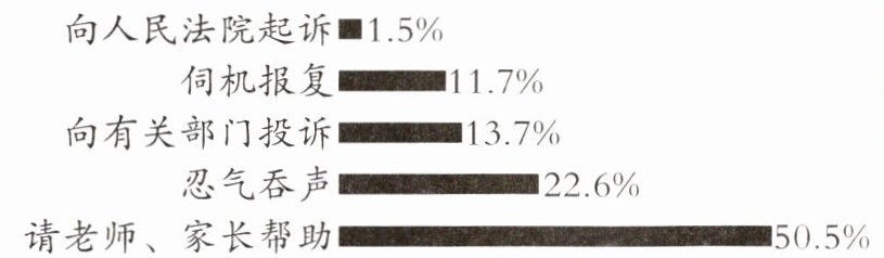 6. 【2024·江苏徐州】某中学法治社团的同学们围绕“合法权益受到侵害时,你的做法是什么”这一问题在学校展开调查。调查结果(见下图)表明,该校同学( )。
