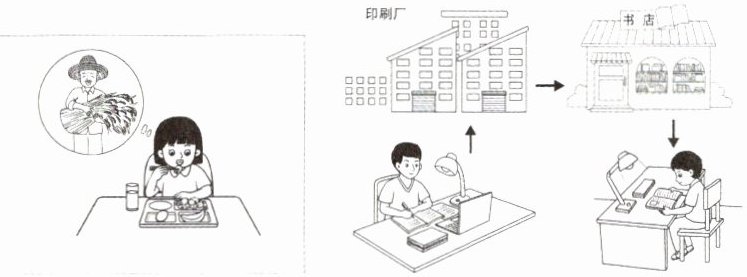 (1)①农民辛勤耕耘为我们提供粮食;图书编辑认真编辑加工图书,经印刷厂印刷后,在书店售卖,为我们提供精神食粮,满足人们的精神需求。这些都说明了社会为人的生存和发展提供必要条件。我们的衣食住用行、学习和娱乐等方方面面都与社会发生着千丝万缕的联系。每个人都从社会中获得物质支持和精神滋养。②社会的发展离不开每个人的努力,正是因为无数人的共同努力,我们的社会才能得以存在和向前发展。