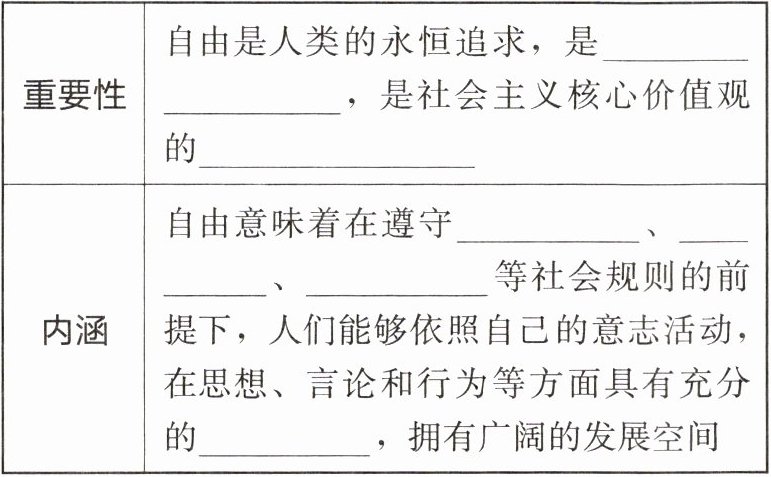 |重要性|自由是人类的永恒追求,是______,是社会主义核心价值观的______|