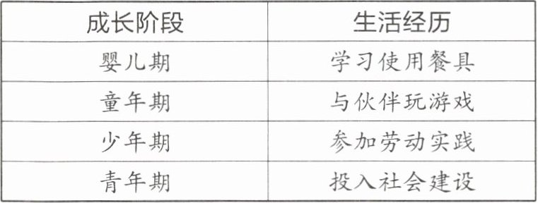 1.×。我们的成长是不断社会化的过程。在社会生活中,我们学习知识,提升能力,锤炼品格,逐步成长为一名合格的社会成员。 2.×。我们还需要学习生活技能、学习扮演社会角色等。 3.√。
