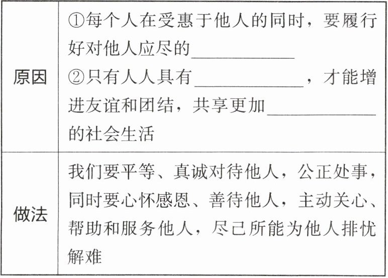 |原因|①每个人在受惠于他人的同时,要履行好对他人应尽的______