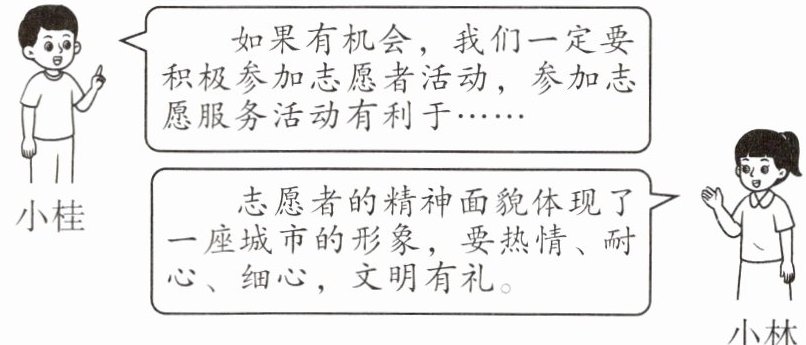 某中学八年级学生小桂和小林在道德与法治课堂上,听了老师分享的关于志愿者的事迹后,发表了如下看法。