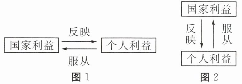 2. 小林学习了“国家利益至上”这一课后,绘制了国家利益与个人利益的关系图(图 1)。道德与法治老师对小林绘制的关系图作了调整(图 2)。老师作出这样的调整,是想告诉我们( )。