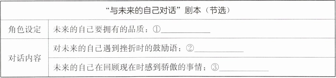 |对话内容|对未来的自己遇到挫折时的鼓励语:②______|