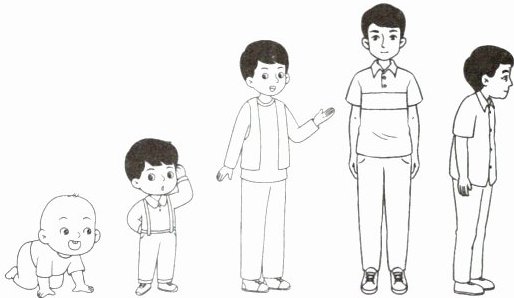 6. 观察下面图画《我们的一生:婴孩→儿童→青少年→中年→老年》。图画给你带来的启示是( )。